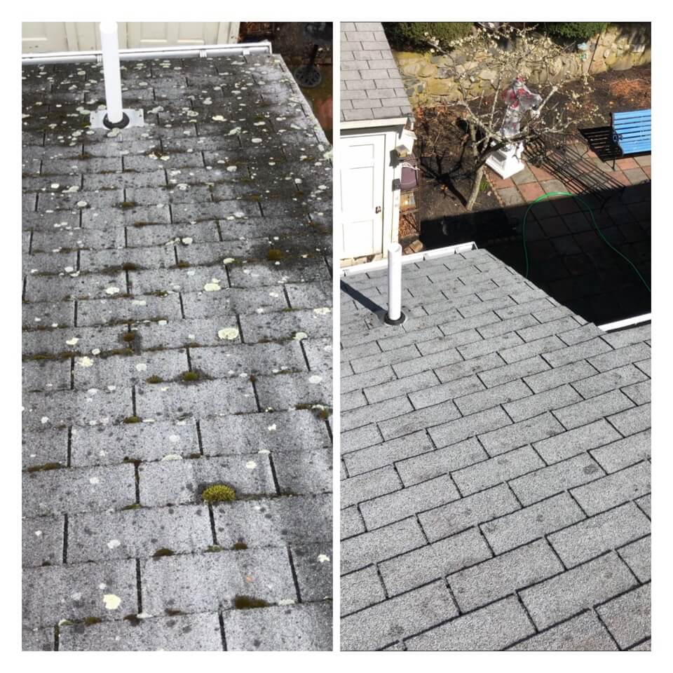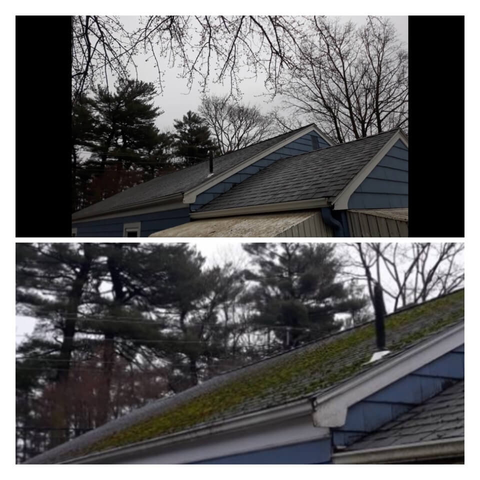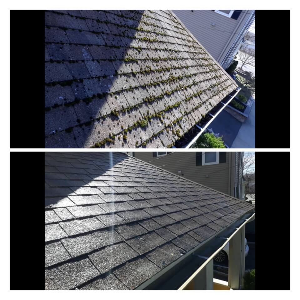 HiCleaners is the most experienced company in Medford, MA that deals with roof washing and roof soft washing. All of our employees are trained to recognize precise solution mixing ratios to provide you with the safest and most effective soft washing service. Roofs are a commonly neglected part of a house due to the fact that most people don’t have ladders to access it, so it is very easy to just leave it alone and forget about problems that may start to arise. Just like many home owners, discoloration and small bits of moss on a roof can be overlooked because of the misconception that it is just aesthetic. However, it isn’t just aesthetic, the moss slowly lifts the granules off the shingles which in turn shorten the life of the shingle. The moss also spreads, just like any bacteria if it is left alone for too long, it can quickly become a problem that spirals out of control. Call HiCleaners for a free quote, we only use the most advanced eco-friendly solutions and equipment to make sure the job is done right, for the safety of the employees, your plants, grass, pets, and children.
