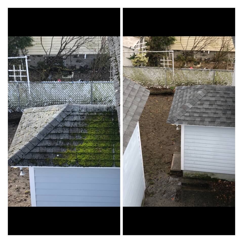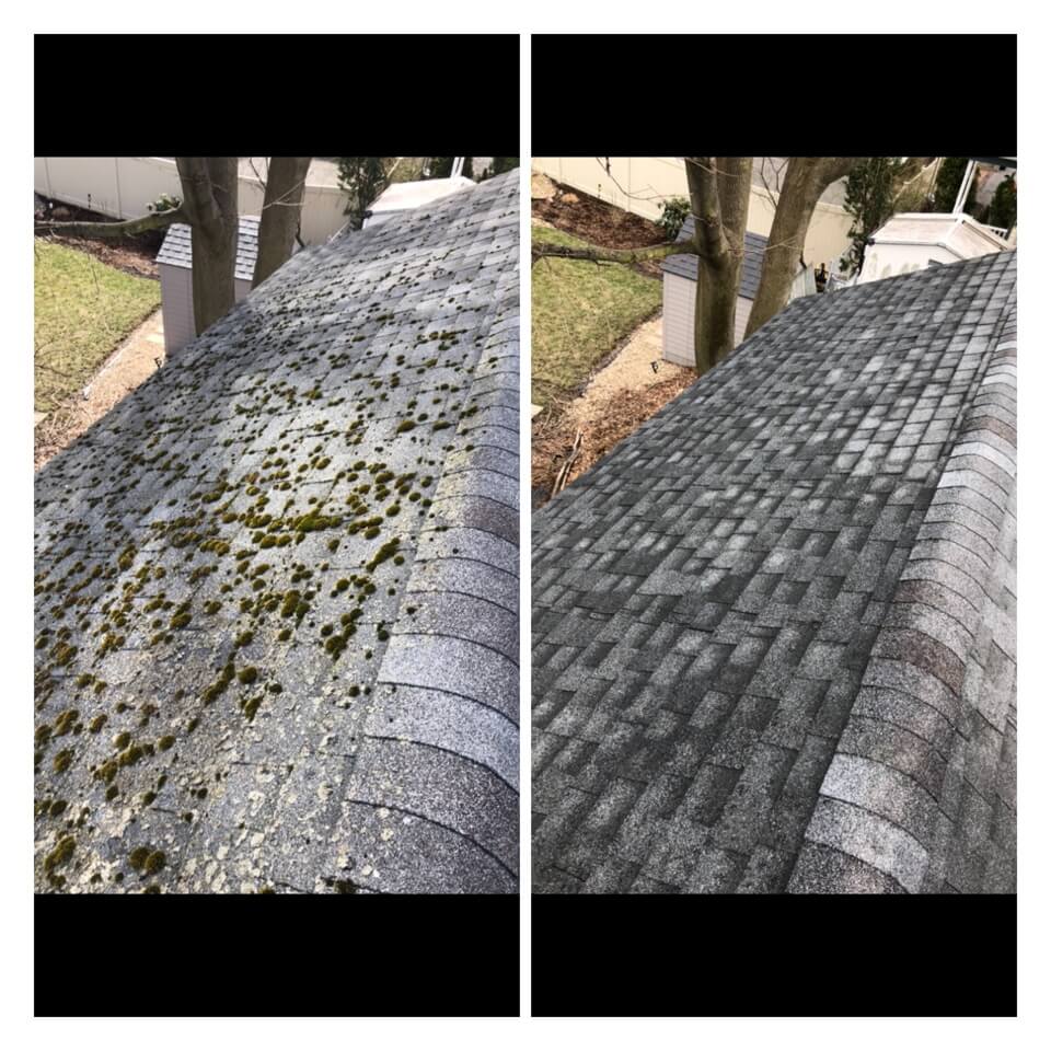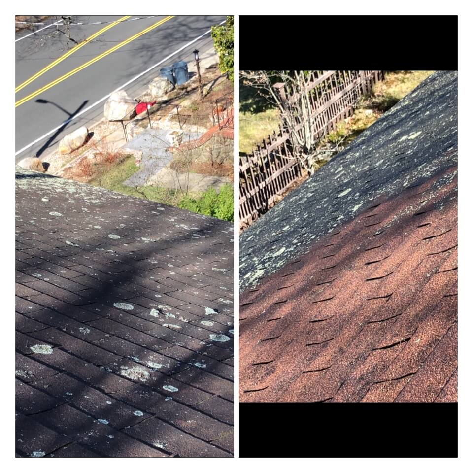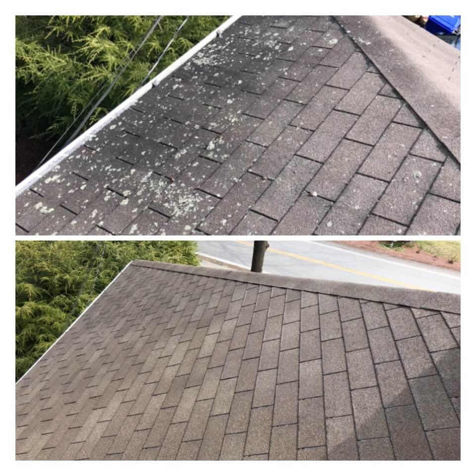HiCleaners is the most experienced company in Medford, MA that deals with roof washing and roof soft washing. All of our employees are trained to recognize precise solution mixing ratios to provide you with the safest and most effective soft washing service. Roofs are a commonly neglected part of a house due to the fact that most people don’t have ladders to access it, so it is very easy to just leave it alone and forget about problems that may start to arise. Just like many home owners, discoloration and small bits of moss on a roof can be overlooked because of the misconception that it is just aesthetic. However, it isn’t just aesthetic, the moss slowly lifts the granules off the shingles which in turn shorten the life of the shingle. The moss also spreads, just like any bacteria if it is left alone for too long, it can quickly become a problem that spirals out of control. Call HiCleaners for a free quote, we only use the most advanced eco-friendly solutions and equipment to make sure the job is done right, for the safety of the employees, your plants, grass, pets, and children.